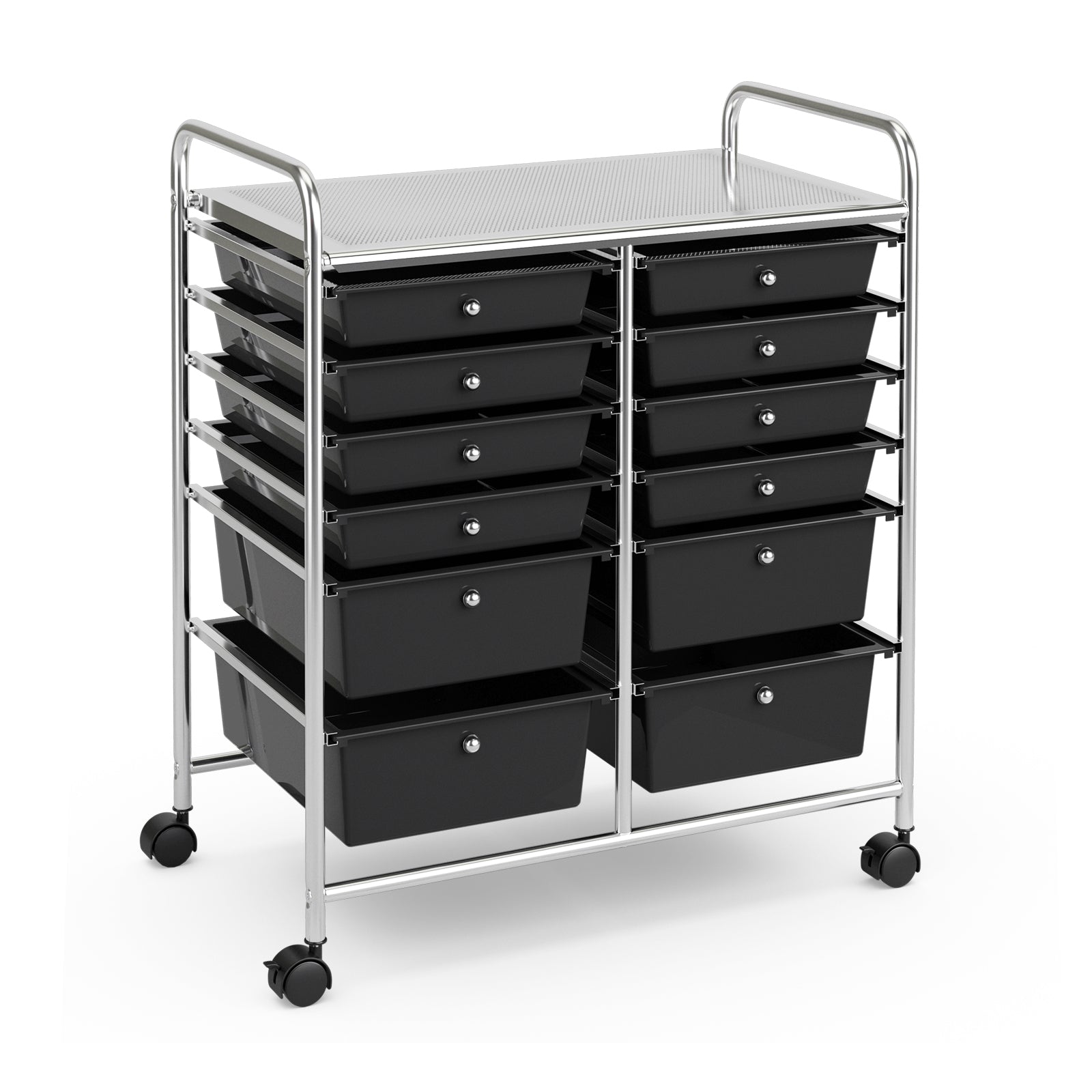 12 Storage Drawer Organizer Bins Rolling Cart-Black